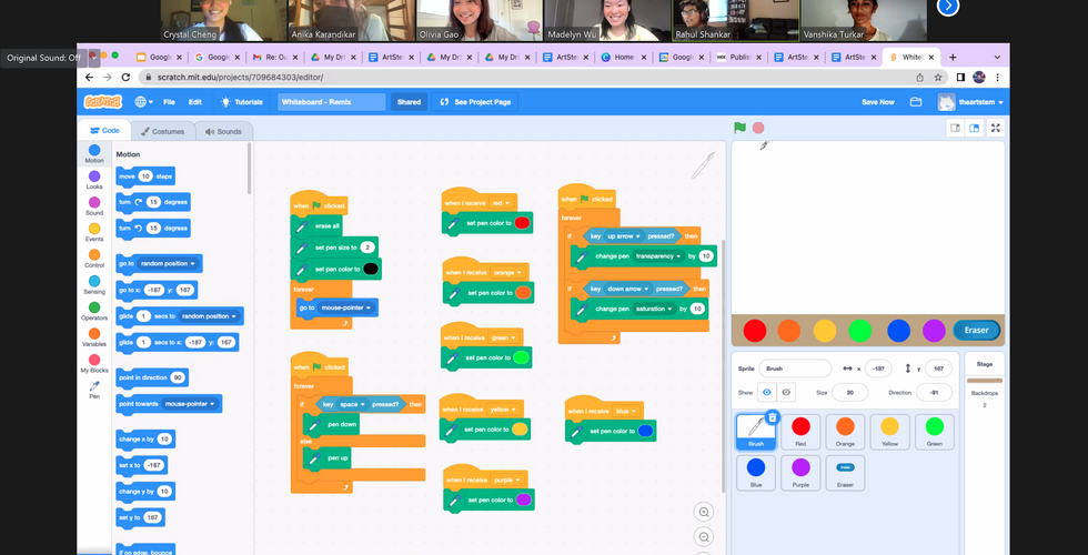 Code Your Art was a little more unique in terms of ArtStem classes, since this class taught using an online platform and the finished product wasn’t on paper. . For Code Your Art, the teachers guided the kids through projects in Scratch, a coding platform that takes those who use it step by step in how to code. The teachers helped the kids put together different games, such as Maze Runner, Flappy Bird, and Rainbow Lines in Space, as well as talked to them about different programming methodologies, helping them gain information while also using a hands-on approach to create projects themselves.